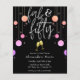 Celebre seu fabuloso aniversário de 50 anos em estilo e acessibilidade com este moderno e colorido convite de 50 anos. Design apresenta as palavras "fab & 50" em uma fonte moderna de script manuscrito com uma borda de gotas coloridas de brilho brilhando e dois copos de champanhe dourados a brindar. No fundo do cartão, são apresentados os detalhes da celebração de aniversário, que pode ser totalmente personalizada de acordo com as suas necessidades. O lado inverso apresenta um bonito padrão de brilho cor-de-rosa listrado.