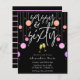 Celebre seu aniversário infeliz de 60 anos em estilo e acessibilidade com este moderno e colorido convite de 60 anos. Design apresenta a palavra "sassy & sexty" em uma fonte moderna de script manuscrito com uma borda colorida de quedas de brilho e dois copos de champanhe dourados a brindar. No fundo do cartão, são apresentados os detalhes da celebração de aniversário, que pode ser totalmente personalizada de acordo com as suas necessidades. O lado inverso apresenta um bonito padrão de brilho cor-de-rosa listrado.