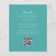 Este elegante design de convite de casamento inspirado em vintage apresenta um par de iniciais monográficas brancas em letra serif aberta acima e abaixo de uma linha divisória e rodeadas por uma crista botânica de arte em linha num fundo azul turquesa. O verso fornece espaço para detalhes do casamento em um fundo de turquesa sólido, junto com um código QR que os convidados podem digitalizar para visitar seu site e RSVP.