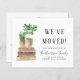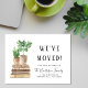Boho chic novo lar/mudança de endereço com anúncio em movimento apresentando aquarelas de livros e plantas caseiras e um mínimo de tipografia moderna. Na frente, personalize com seu nome de família, o texto "Nós nos movemos" e seu novo endereço. No verso, você pode personalizar seu anúncio com mais detalhes e incluir um número de telefone e e-mail, se desejar.