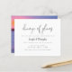 Nossa! Circunstâncias imprevistas acontecem, e quando acontecem, você pode facilmente informar seus convidados de uma maneira divertida e fácil que precisa adiar a data do seu casamento com este cartão de adiamento de casamento minimalista em preto e branco. Apresenta "mudança de planos" em uma fonte caligráfica sofisticada, juntamente com uma tipografia serif simples. Como parte da seleção econômica aqui na Zazzle, esses convites não vêm com envelopes e também não se encaixam bem em um envelope de tamanho padrão. O tamanho mais próximo é A6, mas haverá uma lacuna de aproximadamente meia polegada. Se você não se importa com a falta de ajuste, pode usar envelopes A6 amplamente disponíveis. Caso contrário, este design pode ser transferido para um formato padrão de 5x7 (que vem com envelopes) usando a ferramenta de transferência de design. Como um guia aproximado, no momento da escrita, 100 convites econômicos (incluindo um desconto por volume) custariam cerca de $39, enquanto 100 convites padrão de 5x7, incluindo envelopes, custariam aproximadamente $135. Seus resultados podem variar dependendo dos códigos promocionais disponíveis da Zazzle, promoções em todo o