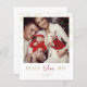 Cartão de Natal personalizado com foto de flocos de neve dourados e azevinho.