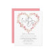 Um valor para o alternativo do ORÇAMENTO em tamanho menor de 4,5 x 5,6" de semirbrilho de 110 lbs, que é de espessura semelhante a um cartão postal (no entanto, não é adequado para uso como cartão postal). POR FAVOR, OBSERVE QUE HÁ UM convite por folha: "Nós fazemos o convite de casamento do quadro cardíaco Sakura". Escrito manual informal, senta-se dentro de um quadro de ouro artístico, em forma de coração, decorado com flor de cereja. O resto do texto abaixo pode ser facilmente personalizado. Um fundo cor-de-rosa coordenado está atrás. As cores de texto e de fundo podem ser alteradas se você quiser se adequar melhor ao seu tema de casamento através da opção personalizar mais.