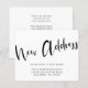 Cartão de Anúncio de Mudança Moderno e Simples com Caligrafia Negrito Endereço Novo... A caligrafia moderna em negrito exibe sua mensagem "Novo Endereço". Seu nome e novo endereço são exibidos logo abaixo deste anúncio. O verso do nosso cartão de mudança de endereço minimalista acessível contém todos os detalhes atualizados que sua família e amigos precisarão para manter contato. O texto de exemplo na frente e no verso (exceto pelo gráfico "Novo Endereço") pode ser facilmente revisado no modelo de personalização.
