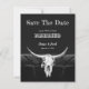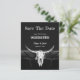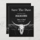 Orçamento do país ocidental vintage estilo antigo cowboy. Casamento preto e branco divertido, salve as cartas chatas. Convites de crânio de vaca em touro. Usem um pouco de humor com esta design engraçada e engraçada. A tipografia pode ser personalizada. Velho oeste selvagem, único. animal legal, de moda fazenda. Personalizar a escrita e a tipografia. Imagem copyright Marg Seregelyi Fotografia.