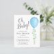 O convite para Chás de fraldas deste rapaz do orçamento é decorado com um balão azul de aquarela e eucalipto verde e diz "Oh Baby!" Facilmente personalizável. Porque nós criamos a nossa trabalho de arte, você não encontrará esta imagem exata de outros designers. Original Watercolor © Michele Davies.