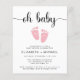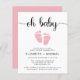 Um convite de chá de menina casal, amigável em orçamento, com "oh baby" em um roteiro de na moda com baloiços e uma cor-de-água rosa pastel de pés de bebês. Por baixo, você pode personalizar facilmente os detalhes do chá.