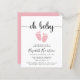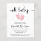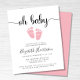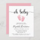 Um convite de chá para uma menina, amigável em termos de orçamento, com "oh baby" em um roteiro de na moda com baloiços e uma cor-de-água rosa pastel de pés de bebês. Por baixo, você pode personalizar facilmente os detalhes do chá.