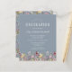 Uma bela borda floral de aquarela de flores silvestres decora a borda inferior deste convite de festa de formatura de vassouras. Personalize o texto branco em um fundo azul empoeirado com o nome do formando em script de escrita manual; o ano escolar e de classe em sans serif; e os detalhes de data, local e RSVP em fontes serif. A parte de trás do cartão apresenta um padrão de coordenação de flores silvestres num fundo azul empoeirado.