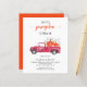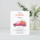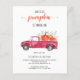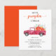 Nossa abóbora está girando um primeiro convite de aniversário, com um caminhão vermelho ilustrado com aquarelas com abóboras. Projetada e ilustrada com amor por Kristine Lee Designs www.kristineleedesigns.com