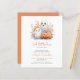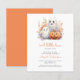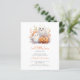 Este belo convite para chás de fraldas apresenta uma ilustração de aquarela de dois fantasmas sorridentes e uma abóbora de Halloween cercada por folhagem de outono. Abaixo, as palavras "um pequeno boo" aparecem no guião tradicional laranja. Personalize o texto com o nome da futura mãe no script e os detalhes na fonte serif de cinzas de carvão. A parte traseira da placa é uma sombra coordenadora de laranja sólido. Ideal para um chá de fraldas de queda neutro em termos de gênero.