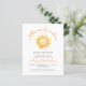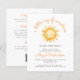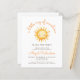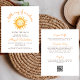 Este convite de chá de bebê fofo apresenta uma ilustração em aquarela de um sol com um rosto sorridente. Acima, as palavras "um pequeno raio de sol" aparecem em uma fonte manuscrita laranja na moda. Personalize o texto com o nome da futura mamãe em fonte laranja e os detalhes em fonte sans serif marrom. O verso fornece espaço para rifa de fraldas, livros para o bebê e detalhes do registro, junto com um código QR conveniente que os convidados podem escanear para visitar o registro. Ideal para chá de bebê de menino ou menina.