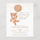 Você está procurando um tema de chá de fraldas bonito? Veja se podemos esperar o convite para Chás de fraldas neutro por gênero. Apresenta um único ursinho de película de aquarela com um balão marrom, pintado por Club Magique. Tem sutil brilho dourado na frente e um padrão dourado de ponto brilhante na parte de trás. O texto "We can Barly Wait" é escrito com um belo roteiro de caligrafia. Você pode adicionar seus detalhes muito facilmente nos campos de modelo ou até personalizar o estilo e as cores da fonte usando a ferramenta design. Temos uma coleção inteira de suprimentos para seu chá de fraldas com este tema do urso. Vá verificar agora. Festa de excelente!