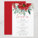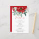 Orçamento Red Poinsettia Florals Menu Rustic Wedding. Um excelente de 5,5" x 8,5" em uma gama de opções de papel. Uma tipografia informal para o título principal Menu que complementa o resto do texto que você pode facilmente personalizar, com lindas flores de massagem no inverno e folhagem no topo.