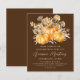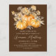 As abóboras de cor d'água elegantes são aninhadas em várias folhagens e flores de outono. Um fundo castanho escuro e rico enquadra-o à perfeição. Perfeito para uma comemoração do outono. Todo texto é editável.