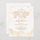 Um convite de chá de fraldas com ilustração de balões neutros com texto decorativo "Ela está prestes a POP" cercado por confetti. Personalize o texto com detalhes da sua ocasião.