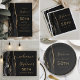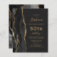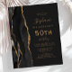 A borda esquerda deste elegante e moderno convite de aniversário 50º apresenta uma borda de agata preta, aparada com brilho dourado. O texto personalizável combina manuscrito dourado, fontes em copperplate e itálico em um fundo preto de slate. O verso apresenta um design de agate preto e dourado correspondente.