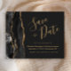 Este cartão elegante e econômico para aviso de data de casamento apresenta uma borda de ágata em aquarela preta com brilho dourado falso. O texto personalizável combina fontes em escrita à mão com cor dourada, copperplate e itálico em um fundo cinza carvão. O verso apresenta um design de ágata preto e dourado correspondente. OBSERVAÇÃO: Os envelopes não estão incluídos automaticamente com esses convites econômicos, então lembre-se de escolher a opção "envelopes brancos em branco"!