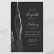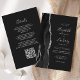 A borda esquerda deste convite de casamento moderno e elegante apresenta uma borda de ágata em aquarela preta aparada com brilho prateado falso. O texto personalizável combina fontes manuscritas, copperplate e itálicas em cinza prateado claro sobre um fundo preto claro. Adicione detalhes adicionais no verso, juntamente com um código QR para ajudar seus convidados a visitar o site do seu casamento.
