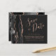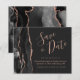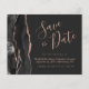 Este elegante cartão de salvar a data com orçamento acessível apresenta uma borda de ágata em aquarela preta decorada com brilho de rosa dourada falsa. O texto personalizável combina fontes de escrita à mão cor-de-rosa, cobre e itálico em um fundo cinza carvão. O verso apresenta um design de ágata preta e rosa dourada correspondente.