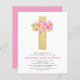 Pastel Pink, Orange and Purple Floral Rosa Fllowers Cruzam Aquarelas Botânicas Primeiro Convites Religiosos (1rua) Santa Comunhão.