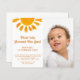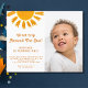 Convide familiares e amigos para a sua primeira festa de aniversário com este convite de orçamento para o 1º aniversário. Ele é decorado com um sol em aquarela e diz "Primeira viagem ao redor do Sol!"