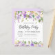 Honra uma mulher especial com este convite de aniversário elegante e feminino. Os detalhes da comemoração de aniversário estão cercados por cima e por baixo, bordas florais roxas. Os elementos florais estão aninhados em folhas verdes profundas. Enquanto é um design tradicional, a folhagem botânica aberta e arejada e o texto lhe dão uma vibração contemporânea. Este item faz parte da coleção Botânica Floral Roxo Rústica.