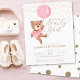 Você está procurando um tema de chá de fraldas bonito? Confira este orçamento que podemos convidar Chá de fraldas de Menina de Espera. Apresenta um único ursinho de cor d'água com um balão cor-de-rosa, pintado pelo Club Magique. Também tem uma sutil brilho de ouro na frente e um padrão de ponto brilhante dourado na parte de trás. O texto "We can Barly Wait" é escrito com um belo roteiro de caligrafia. Você pode adicionar seus detalhes muito facilmente nos campos de modelo ou até personalizar o estilo e as cores da fonte usando a ferramenta design. Temos uma coleção inteira de suprimentos para seu chá de fraldas com este tema do urso. Vá verificar agora. Festa de excelente!