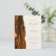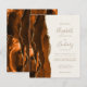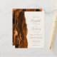 A borda esquerda deste elegante convite de casamento moderno apresenta uma cor de água laranja queimada, aparada com falsa brilho dourado. O texto personalizável combina manuscrito dourado, fontes em copperplate e itálico em um fundo de marfim. O verso apresenta uma design de cor laranja queimada e dourada.