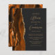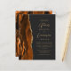 A borda esquerda deste elegante convite de casamento moderno apresenta uma cor de água laranja queimada, aparada com falsa brilho dourado. O texto personalizável combina o script dourado e as fontes sans serif em um fundo preto de slate. O verso apresenta uma design de cor laranja queimada e dourada.