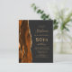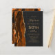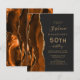 A borda esquerda deste elegante e moderno convite de aniversário 50º apresenta uma borda agitada de cor laranja queimada, aparada com brilho dourado. O texto personalizável combina manuscrito dourado, fontes em copperplate e itálico em um fundo preto de slate. O verso apresenta uma design de cor laranja queimada e dourada.