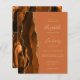 A borda esquerda deste elegante convite de casamento moderno apresenta uma laranja queimada e uma aquarela marrom aparada com falsa brilho dourado. O texto personalizável combina manuscrito colorido de ouro pálido, fontes copperplate e itálico em um fundo laranja queimado. O lado inverso apresenta um design agate correspondente.