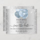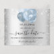 Uma garota e moda Salve o cartão de data para uma Quinceañera, 15 festa de aniversário. Um fundo com aspecto fino prateado decorado com pó falso prateado brilhante e balões azuis. Personalize e adicione uma data e nome/idade. O texto: Salvar a Data é gravado com um script de estilo com letra de tendência grande.