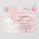Um convite moderno, na moda e glamouroso para uma Quinceañera, festa de aniversário 15. Uma lâmina cor-de-rosa pincelada, impressão de seda como fundo, decorada com pó falso prateado brilhante, uma tiara e um vestido e flores cor-de-rosa e brancas. O nome é escrito com um moderno estilo escrito à mão. Personalize e adicione os detalhes da sua festa.