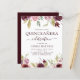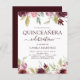 Os Convites de festas de Celebração Floral de Quinceanera, Elegante e Moderno, Rosa Espelho Rosa e Borgonha Vermelha, incluem uma bela e elegante tipografia com modernas flores cor-de-rosa com pincel botânico e Burgundy para a celebração especial de 15.
