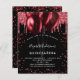 Para uma elegante Quinceanera, 15. Um fundo na moda preto. Decorado com brilho vermelho e balões. Personalize e adicione um nome, idade e detalhes da festa. O nome é escrito com um script de estilo manuscrito