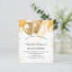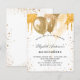 Para uma elegante Quinceañera, 15 festa de aniversário. Um fundo branco chic. Decorado com pingos de ouro falso, aparência de pingar tinta e balões. Personalize e adicione um nome, idade e detalhes da festa. O nome é escrito com um script de estilo manuscrito