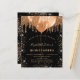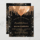 Para uma elegante Quinceañera, 15. Um fundo na moda preto. Decorado com brilho dourado escuro e balões. Personalize e adicione um nome, idade e detalhes da festa. O nome é escrito com um script de estilo manuscrito