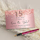 Uma garota e moda Salve o cartão de data para uma Quinceañera, 15 festa de aniversário. Leve o fundo metálico de aspecto fino, cor-de-rosa, decorado com poeira brilhante fraca. Personalize e adicione uma data e um nome/texto. O texto: Salvar a Data é gravado com um script de estilo com letra de tendência grande. Número 15 com letra rosa dourada no estilo do balão.