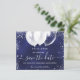 Uma garota e moda Salve o cartão de data para uma Quinceañera, 15 festa de aniversário. Um fundo azul marinho incolor. Decorado com falso brilho prateado e balões brancos. O texto: Salvar a Data é gravado com um script de estilo com letra de tendência grande.