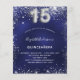 Um convite moderno, na moda e glamouroso para uma Quinceañera, festa de aniversário 15. Um fundo azul marinho, decorado com faxes cintilantes prateados. A cor azul é irregular. Personalize e adicione seu nome e detalhes da festa. O número 15 é escrito com uma fonte no estilo do balão.
