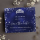 Uma garota e moda Salve o cartão de data para uma Quinceañera, 15 festa de aniversário. Um fundo azul marinho incolor. Decorado com pó falso prateado e uma tiara, coroa. O texto: Salvar a Data é gravado com um script de estilo com letra de tendência grande.