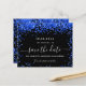 Um fundo preto decorado com confete azul real. Personalize e adicione uma data e nome/idade. O texto: Salvar a Data é gravado com um script de estilo com letra de tendência grande.