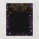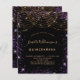 Para uma elegante Quinceañera, 15 festa de aniversário. Um fundo na moda preto. Decorado com pó de ouro falso roxo e poeira de luz ouro. Personalize e adicione um nome, idade e detalhes da festa. O nome é escrito com um script de estilo manuscrito