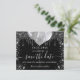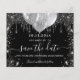 Uma garota e uma moda Salvem a data para uma Quinceañera, 15 festa de aniversário. Um fundo preto decorado com pingos falso de luz prateada, faíscas e balões. Personalize e adicione uma data e nome/idade. O texto: Salvar a Data é gravado com um script de estilo com letra de tendência grande.