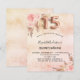 Um fundo rosa dourado, rosado, rosado e roxo, com aspecto metálico. Decorados com ouro rosa e flores, rosas, grama-pampas. Personalize e adicione um nome e detalhes da parte. O número 15 é escrito com uma fonte no estilo do balão.