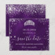 Uma garota e moda Salve o cartão de data para uma Quinceañera, 15 festa de aniversário. Um fundo púrpura incolor. Decorado com pó falso prateado e uma tiara, coroa. O texto: Salvar a Data é gravado com um script de estilo com letra de tendência grande.