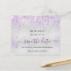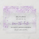 Uma garota e uma moda Salvem a data para uma Quinceañera, 15 festa de aniversário. Um fundo metálico moderno, falso e prateado, decorado com pó de brilho púrpura. Personalize e adicione uma data e nome/idade. Letras pretas e roxas coloridas. O texto: Salvar a Data é gravado com um script de estilo com letra de tendência grande.