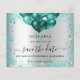 Uma garota e moda Salve o cartão de data para uma Quinceañera, 15 festa de aniversário. Um fundo com aparência de prata falsa, decorado com pó de cinza verde e poeira brilhante verde. Personalize e adicione uma data e nome/idade. O texto: Salvar a Data é gravado com um script de estilo com letra de tendência grande.