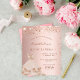Um convite moderno, na moda e glamouroso para uma Quinceañera, festa de aniversário 15. Um fundo metálico rosa dourado falso com brilho falso e um rosa dourado. O nome é escrito com um moderno e escuro, rosa dourado, escrito com letra de estilo manuscrito. Personalize e adicione os detalhes da sua festa.